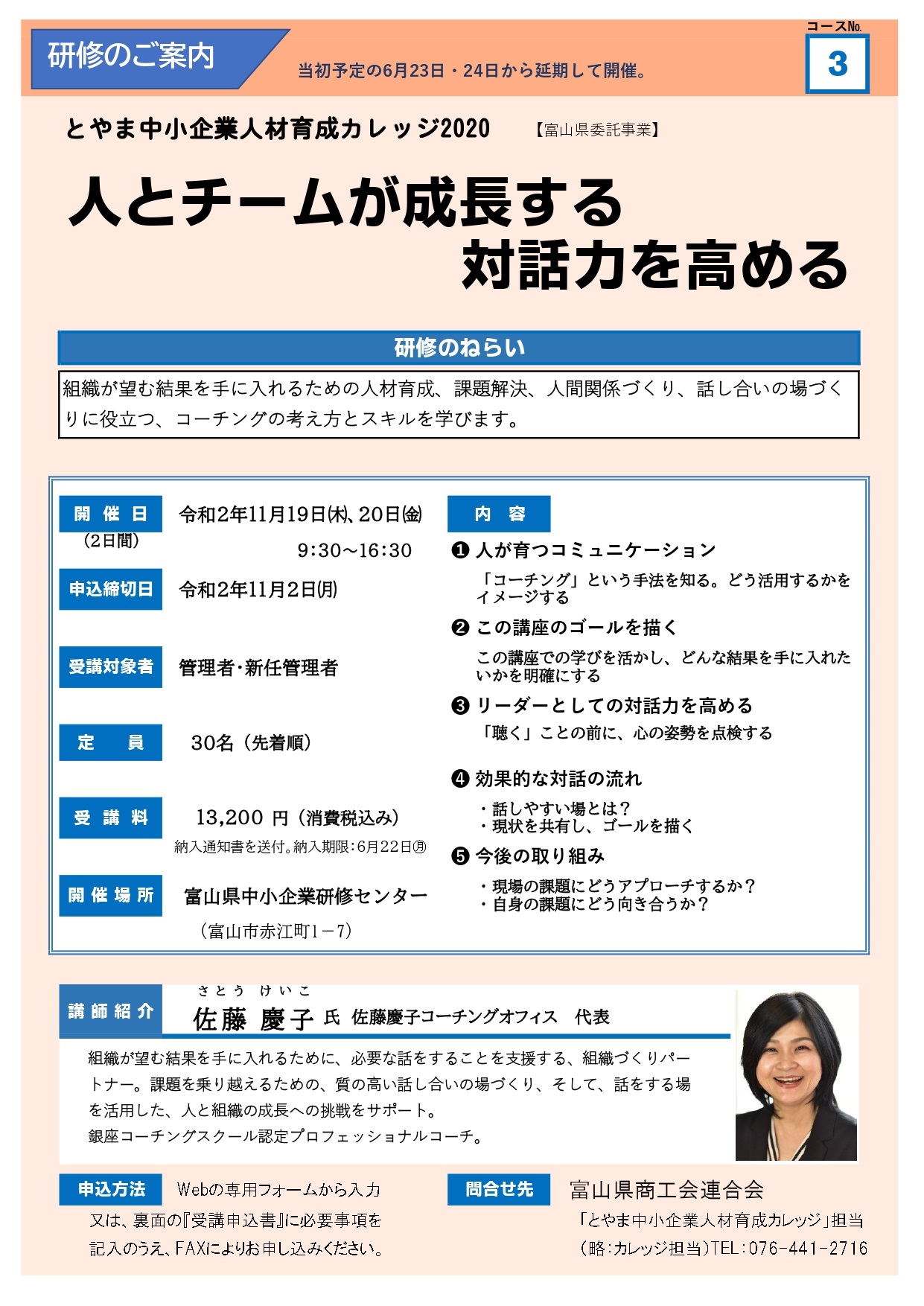とやま中小企業人材育成カレッジ2020 3⃣「人とチームが成長する対話力を高める」