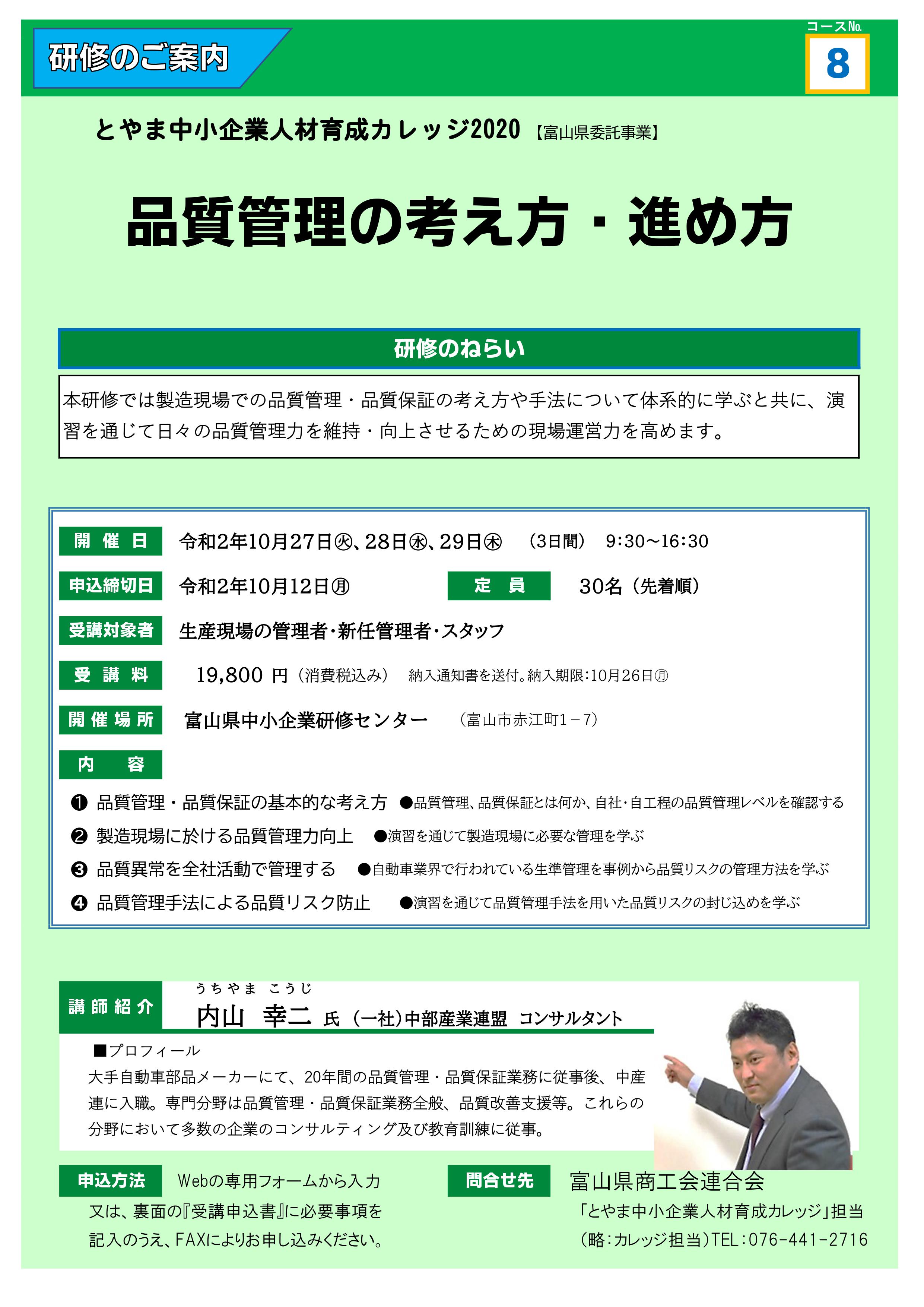 とやま中小企業人材育成カレッジ2020 8⃣「品質管理の考え方・進め方」