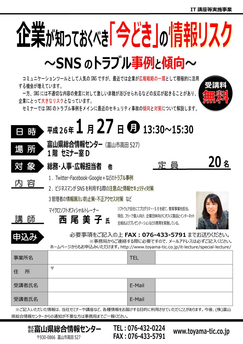 セミナーではSNSのトラブル事例をメインに最近のセキュリティ事故の傾向と対策について解説します。