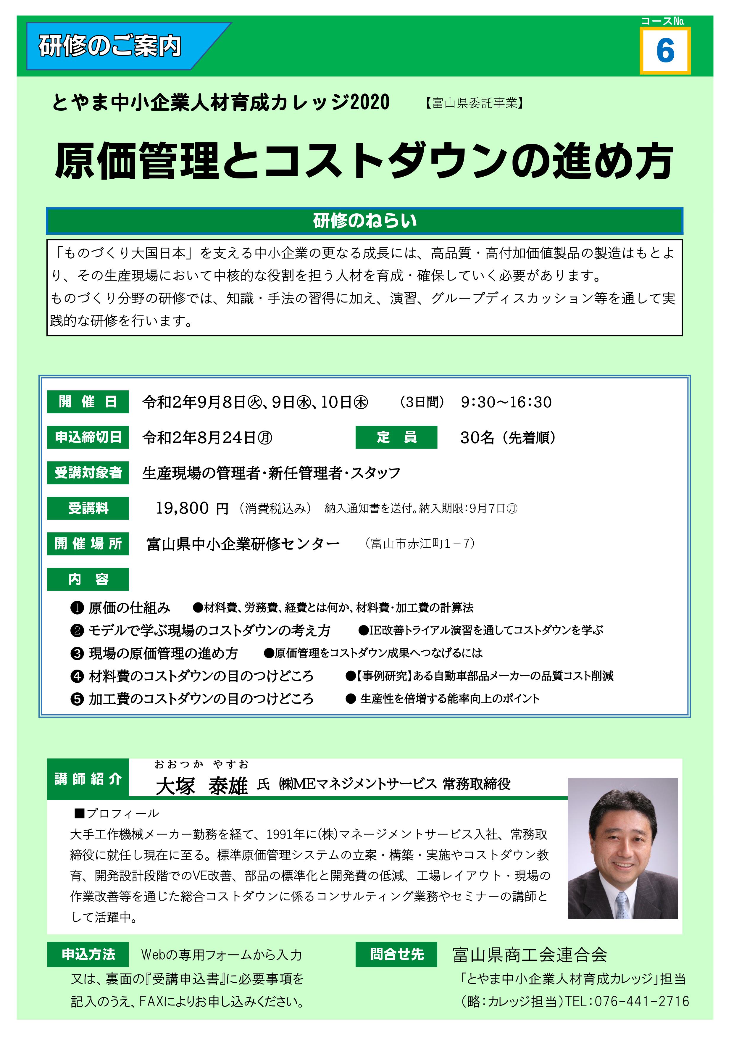 とやま中小企業人材育成カレッジ2020 6⃣「原価管理とコストダウンの進め方」