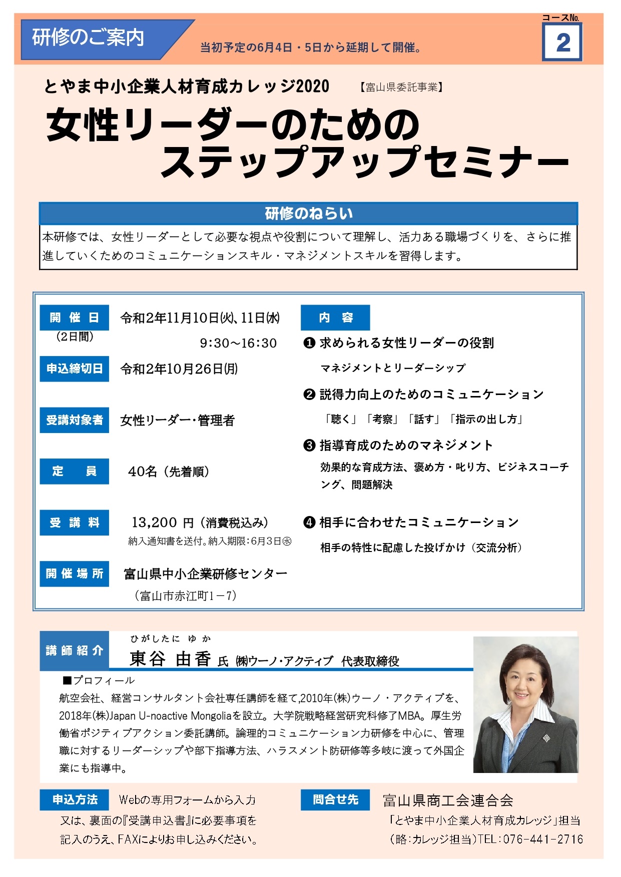 とやま中小企業人材育成カレッジ2020 2⃣「女性リーダーのためのステップアップセミナー」