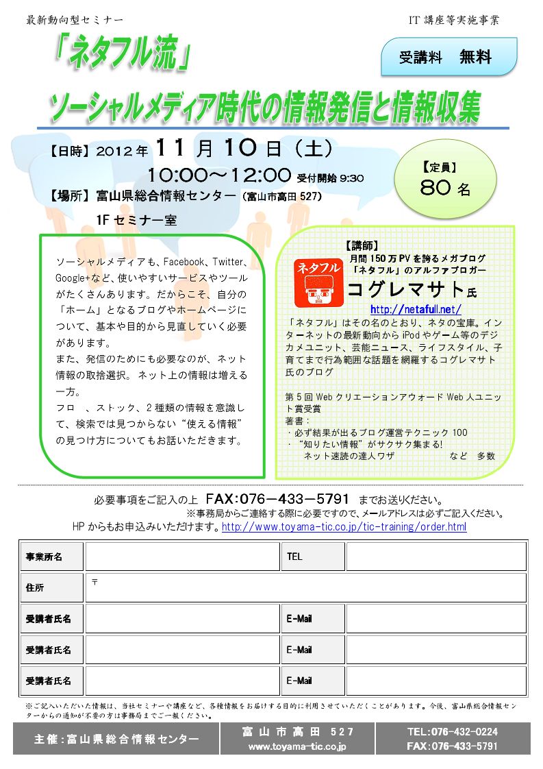 場所 富山県総合情報センター 1Fセミナー室