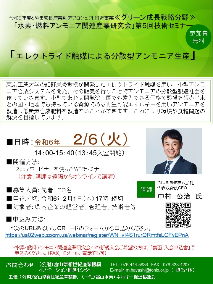 ≪グリーン成長戦略分野≫水素・燃料アンモニア関連研究会 第5回技術セミナー