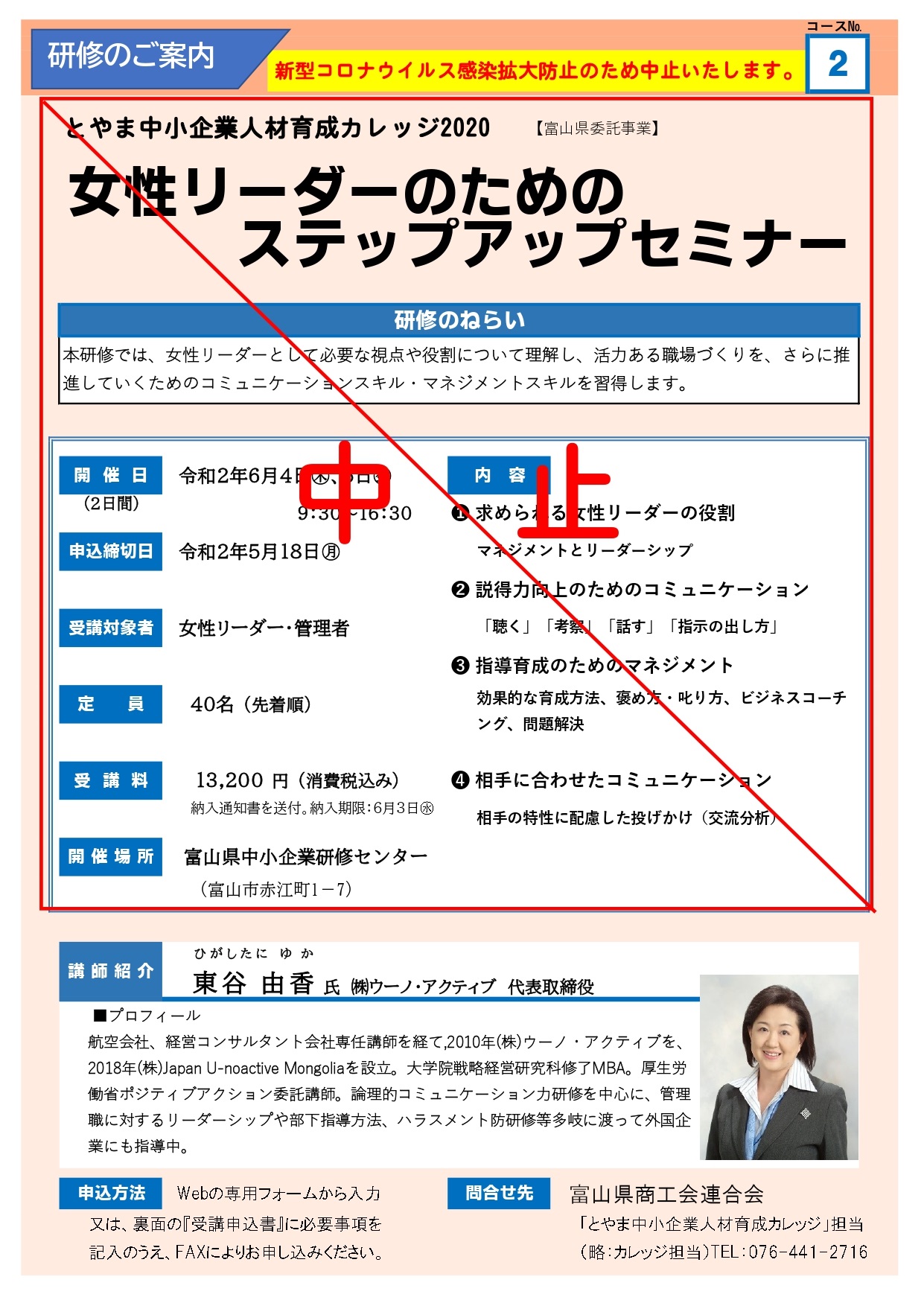【延期】とやま中小企業人材育成カレッジ2020 2⃣「女性リーダーのためのステップアップセミナー」